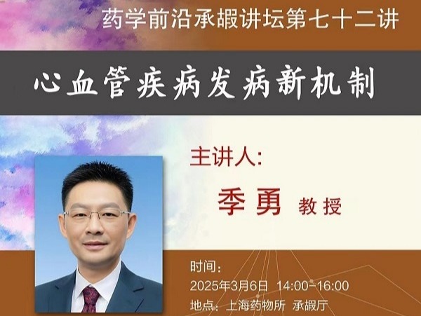 哈爾濱醫科大學教授季勇應邀作藥學前沿承嘏講壇第七十二講