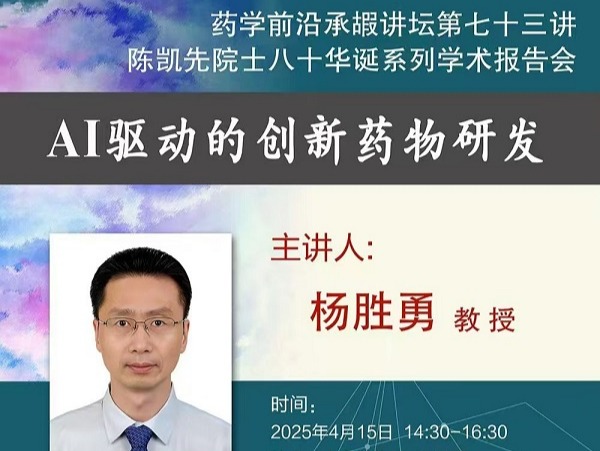 四川大學楊勝勇教授應邀作藥學前沿承嘏講壇第七十三講